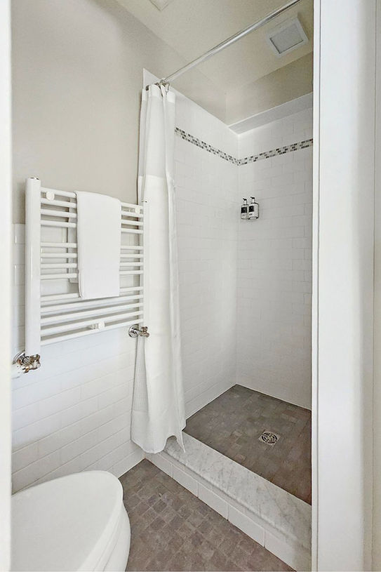 With sunset wine-sipping views, this cozy third-floor room makes you want to just stay in and snuggle. Even more so now, with our lovely in-room electric fireplace (seasonal use)**. Our 120-year-old architecture means a smaller bathroom and the placement of the vanity sink in the bedroom—we call it classic inn charm!